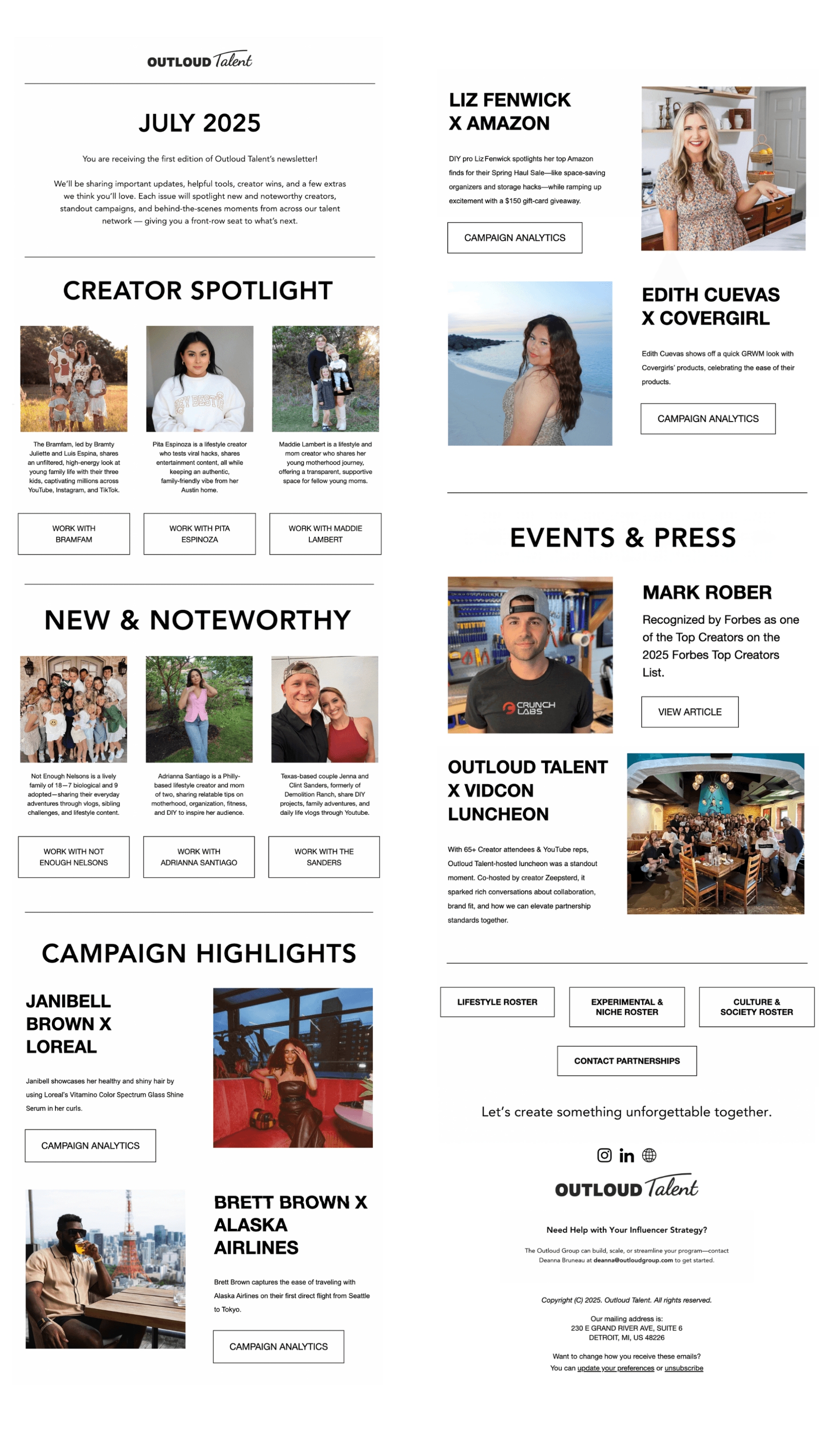 I developed the marketing identity for social media and newsletters by creating templates, ensuring alignment with Outloud Talent’s brand guidelines while guaranteeing visual aesthetics.